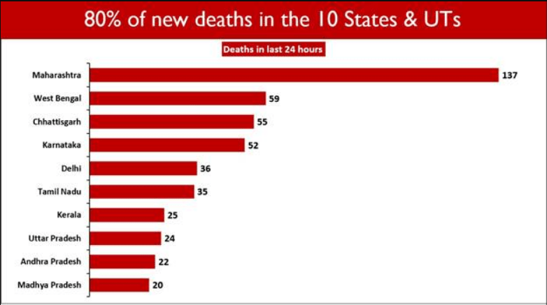 Maharashtra has contributed the maximum to the new fatalities with 137 deaths.