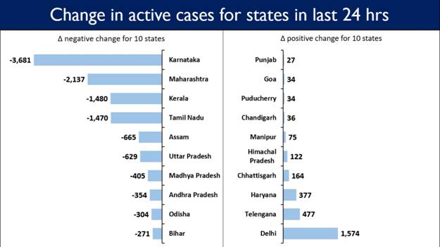 The trajectory of the active caseload across different States/UTs has been diverse indicating their efforts and gradual progress in their fight against the global pandemic.
