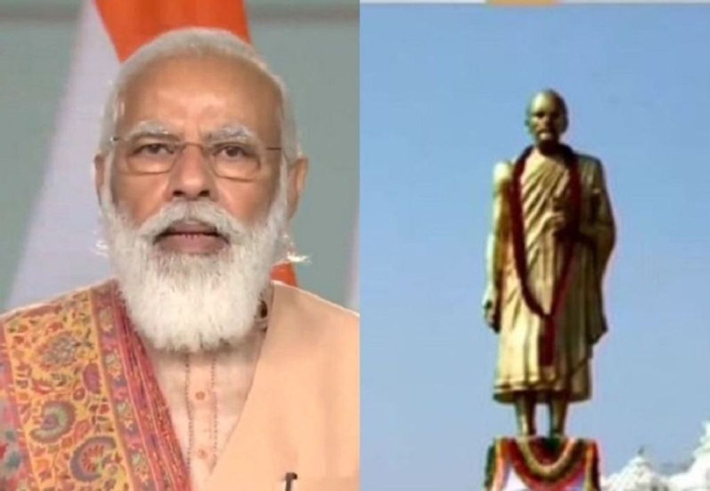 The Prime Minister, Shri Narendra Modi, today unveiled ‘Statue of Peace’ to mark the 151st Birth Anniversary celebrations of Jainacharya Shree Vijay Vallabh Surishwer Ji Maharaj, via video conferencing. The Statue unveiled in the honour of the Jain acharya has been named as ‘Statue of Peace’. The 151-inch tall statue has been made from Ashtadhatu i.e. 8 metals, with Copper being the major constituent, and is installed at Vijay Vallabh Sadhana Kendra, Jetpura, in Pali, Rajasthan.