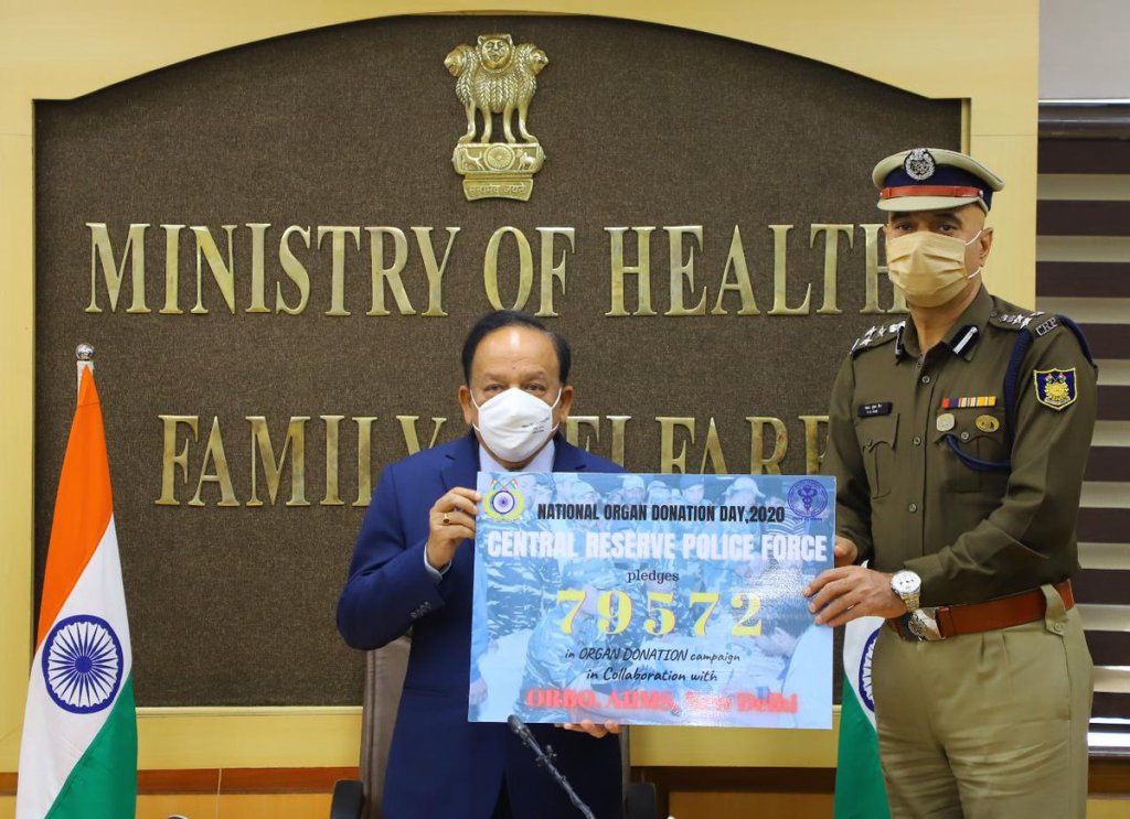 Dr. Harsh Vardhan addressed CRPF jawans on an event to mark the culmination of a massive voluntary campaign that was launched by CRPF on 14th August this year to bring awareness about organ donation among its nearly three and a half lakh jawans in collaboration with All India Institute of Medical Sciences (AIIMS) New Delhi and Organ Retrieval Banking Organization (ORBO).