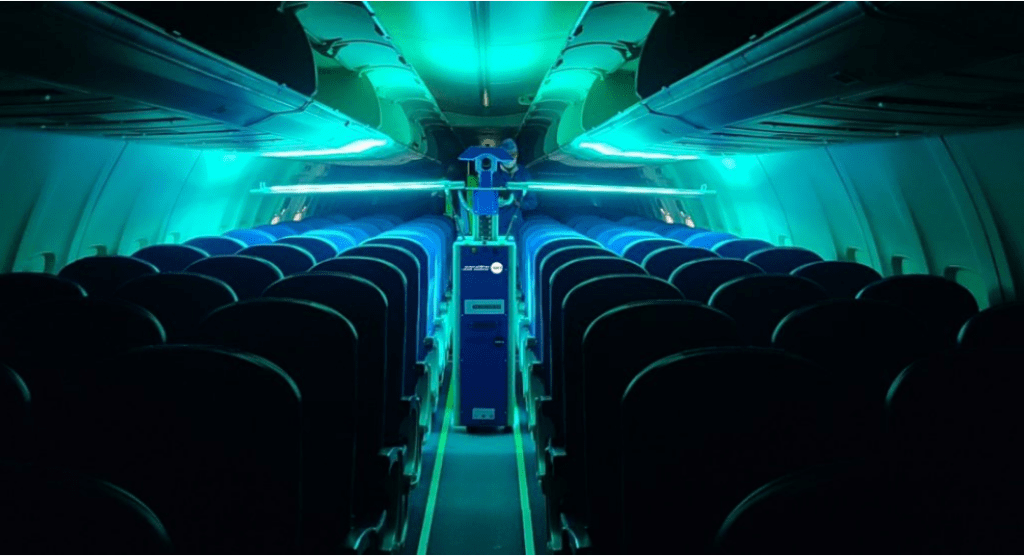 The robotic device, fitted with collapsible arms, is specifically designed to disinfect aircraft seats, under-seat areas, inside overhead baggage compartment, aisle ceiling, window panels, cockpit instrumentation area, overhead switch panel and interiors from viruses and bacteria.