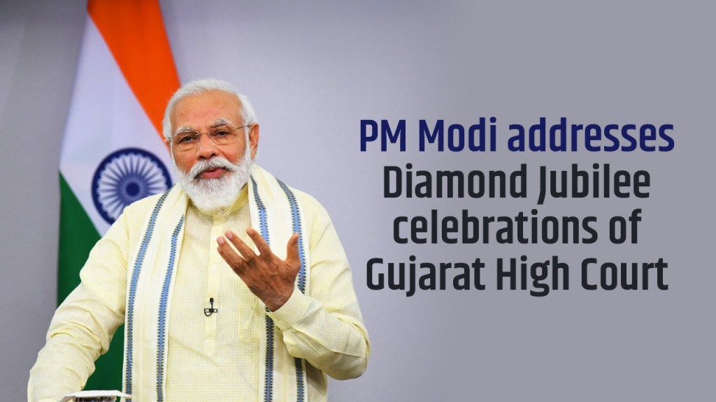 The Prime Minister, Shri Narendra Modi addressed an event marking the Diamond Jubilee of the High Court of Gujarat today via video conferencing. He also released a Commemorative Postage Stamp marking the completion of sixty years of the establishment of the High Court. Union Minister of Law & Justice, Judges of Supreme Court and High Court of Gujarat, and Chief Minister of Gujarat and members of the law fraternity were present on the occasion.