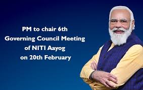 PM to chair 6th Governing Council Meeting of NITI Aayog on 20th February. Prime Minister Shri Narendra Modi will chair the sixth meeting of the Governing Council of NITI Aayog on 20th February 2021 at 10:30 AM via video conferencing.