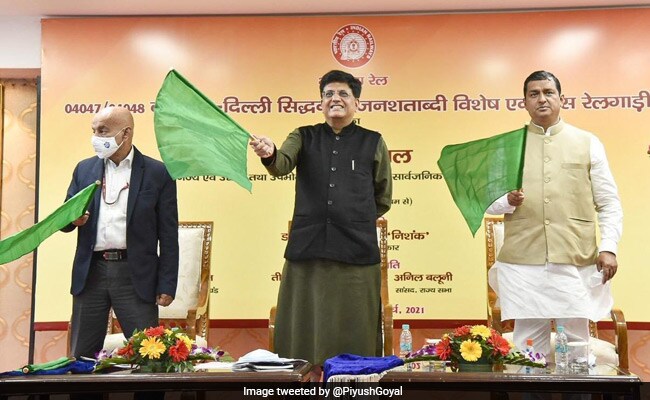The Union Minister of Railways, Commerce & Industry and Consumer Affairs, Food & Public Distribution, Shri Piyush Goyal flagged off Kotdwar-Delhi Junction-Kotdwar Siddhabali Jan Shatabdi Special train through video conferencing today along with Union Education Minister, Dr. Ramesh Pokhriyal ‘Nishank’ and other dignitaries present at the event site.