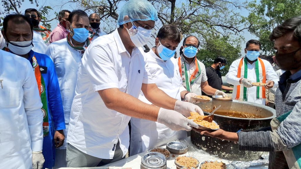 Chandni Chowk District Congress distributed Cooked food, fruits, masks, sanitisers to the poor and needy people as part of the Congress’s kitchen program at Nigam Bodh Ghat. Delhi Pradesh President Ch Anil Kumar was specially present on this occasion.