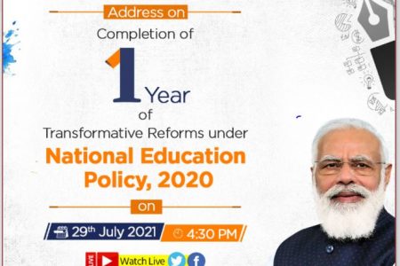 Prime Minister Shri Narendra Modi will address policy makers in the domain of education and skill development, students, teachers, across the country on 29th July 2021, via video conferencing, to mark the completion of one year of reforms under the National Education Policy 2020. He will also launch multiple initiatives in the education sector.