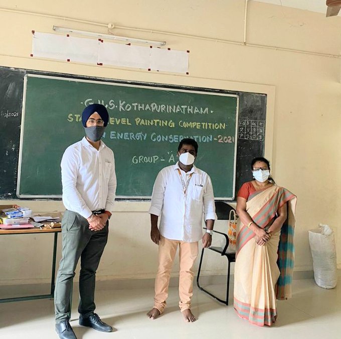 33 children paint for an energy efficient India at the GHS Kothapuri Natham centre, Puducherry. The state level painting competition is being organised at multiple centres across Puducherry by REC to raise awareness about energy conservation amongst the students.