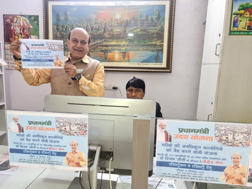 A one-day camp was organized by DDA under the leadership of Senior BJP leader & Ex-MLA Dr. Vijay Jolly at his BJP office located at D-10 Mangal Bazar Road, Sangam Vihar, New Delhi-80. This was set up under Central Govts., Processing Center No. 110, PM-UDAY, UC-Cell, Sarita Vihar, New Delhi.