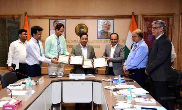 Union Minister for MSME Shri Narayan Rane graced the occasion of MoU signing between the National Small Industries Corporation Ltd. (NSIC), a Public Sector Enterprise of Ministry of MSME, Govt. of India, and Andhra Pradesh Medtech Zone Limited (AMTZ), on cooperation in the healthcare sector . Shri B.B. Swain, Secretary (MSME) and other senior officers were also present.
