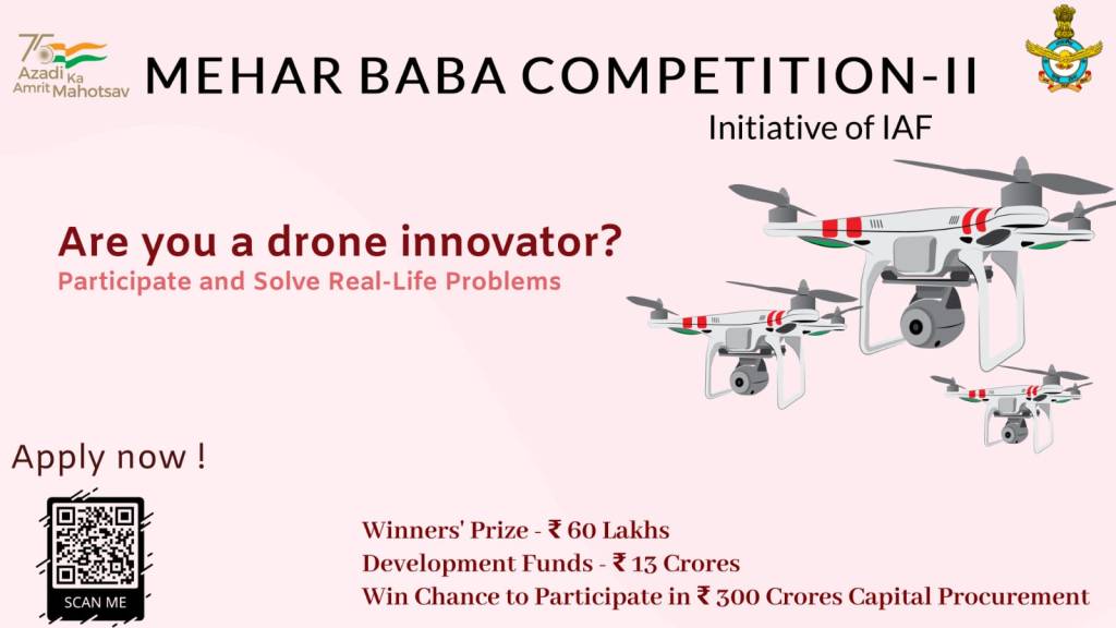 To provide a boost to the growing indigenous drone industry, Hon’ble Raksha Mantri launched the “MEHAR BABA COMPETITION-II” on 06 April 2022 at Air Headquarters (Vayu Bhawan). The competition is aimed at developing technology for a “Swarm Drone Based System to Detect Foreign Objects on Aircraft Operating Surfaces”. The competition is named after the legendary Air Commodore Mehar Singh, MVC, DSO – affectionately also known as Mehar Baba. The first edition of the competition was launched in October 2018 and culminated in October 2021.