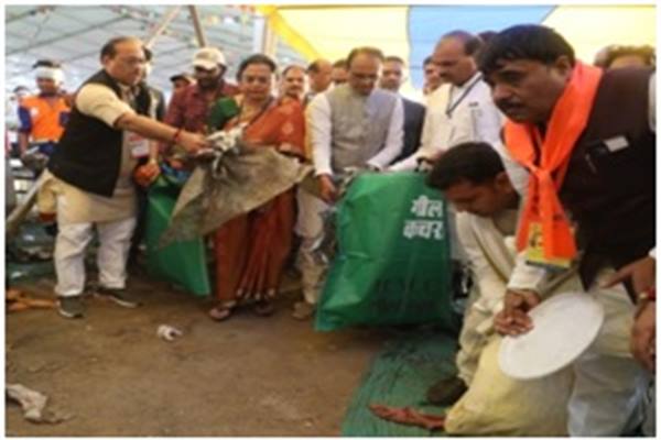 Chief Minister Shri Chouhan said that those participating in social programmes should take special care of cleanliness and hygiene. It is the responsibility of the social organisations to clean the garbage and waste spread on the site after the completion of the programme and motivate people to put the garbage in place. CM Shri Chouhan put the food items lying on the food table and below and other waste in the bag. CM Shri Chouhan encouraged the sanitation workers by getting a group photo clicked with them.