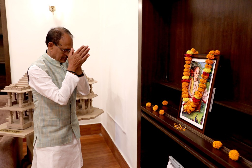 Chief Minister Shri Shivraj Singh Chouhan paid tribute to the author of Shri Ramcharitmanas, Mahakavi Goswami Tulsidas on his Birth anniversary. CM Shri Chouhan garlanded the portrait of Goswami Tulsidas and offered floral tributes in the auditorium located at the residence office.
