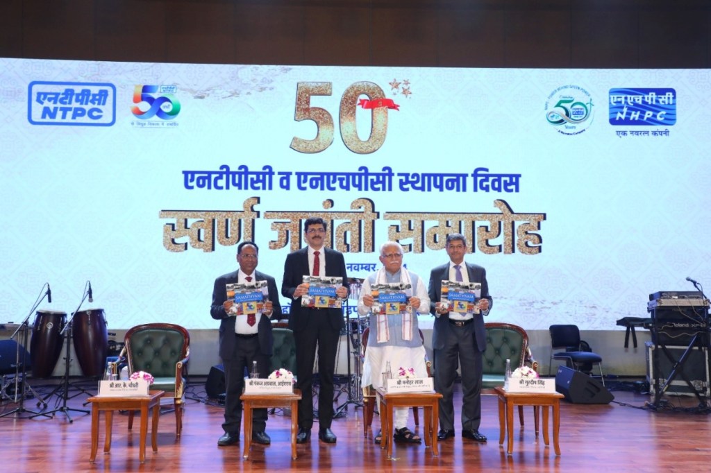 Gracing the 50-year celebration at Bharat Mandapam in the presence of Shri Pankaj Agarwal, Secretary (Power), Shri Gurdeep Singh, CMD (NTPC) and Shri R K Chaudhary, CMD (NHPC), Hon’ble Minister released NTPC’s coffee table book, “Samathvam,” which chronicles the rich history of NTPC through stunning visuals and inspiring stories.