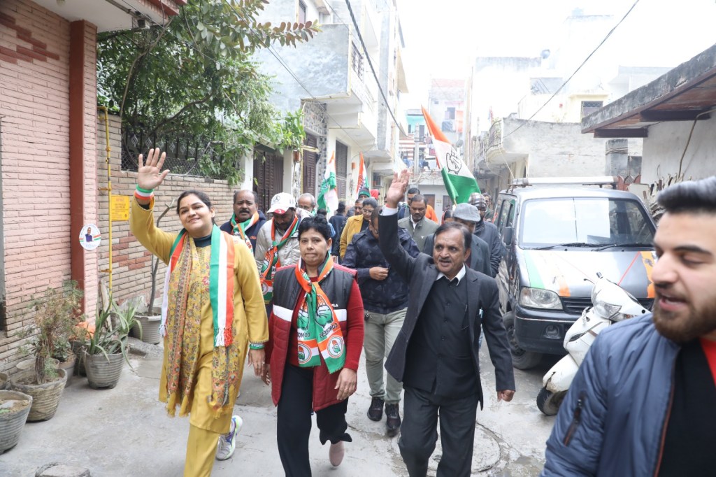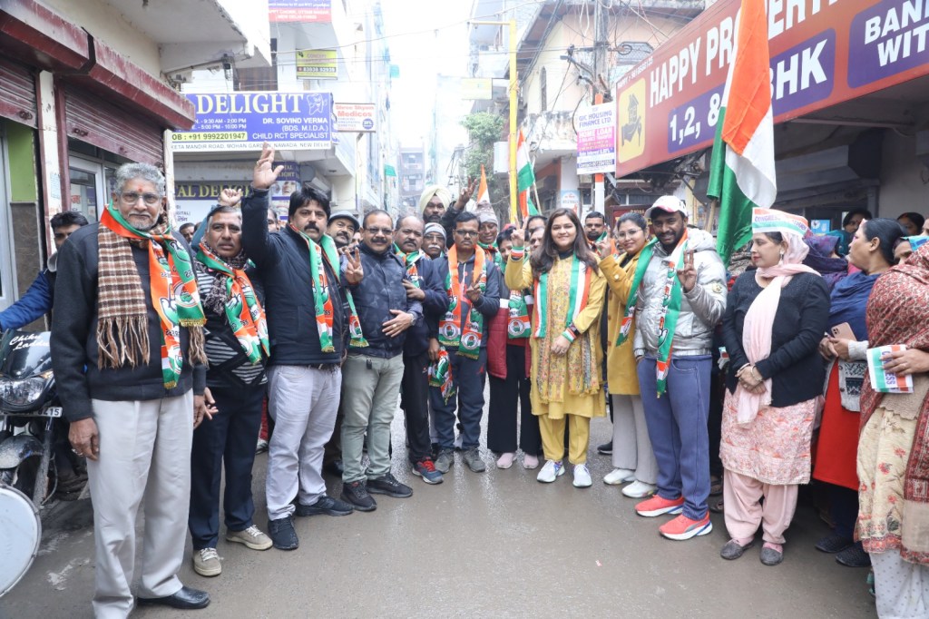 While on the one hand Congress candidate for Mahapanchayat from Uttam Nagar Assembly Shri Mukesh Sharma has again started the padyatra of the entire Assembly constituency and the public relations campaign is being carried out on a war footing, on the other hand t his daughter Smt. Anusha Sharma also jumped into his election campaign. Mrs. Sharma held a padyatra of Mohan Garden’s K-1 Extension, L Pocket and Shakti Vihar Vijay Nagar.