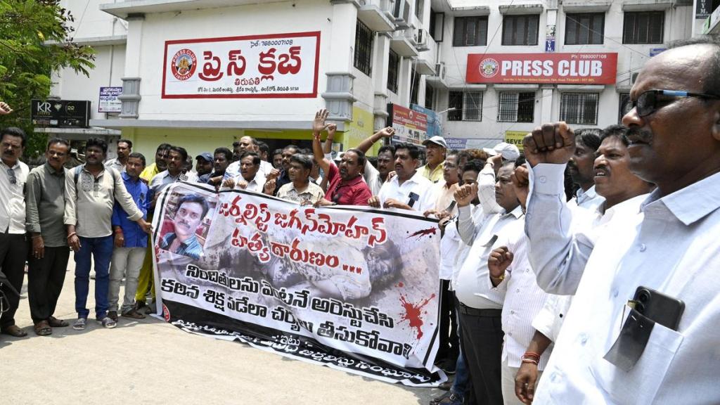 Various journo-bodies organized protest demonstrations at Tirupati Press Club, where Indian Journalists Union (IJU) claimed that Jaganmohan was attacked just a few days after he reported on sandalwood smugglers in the locality. The national journo-body also demanded to formulate a strict policy to safeguard the working journalists and the press freedom in general.